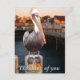 "Thinking of you" Card. with a picture of a pelican on front. I took this picture at the Redondo Beach Pier 2008.