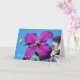 A thinking of you greeting card with a photograph of a bright and cheery purple clematis against the background of a blue summer sky. Part of a matching set. Image by: PhotographyTKDesigns