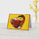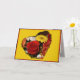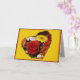 A colourful flower bouquet in a grunge heart shape sits over a yellow textured background of this template card design. The border is a cut from the same rose and daisy photograph as the heart. Personalise he template for the inside message, remove the text completely for a blank inside leaving room for a handwritten note or click customise to select a font in the style, size, and colour you prefer and to add text to the cover.