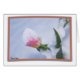 A Spring blooming pink and orange tulip bends under the weight of a day of snow showers. This orange and blue framed photograph is set over a white background. Personalize the inside text by filling in the template field under Personalize it, remove the text leaving room for a handwritten note or click Customize it to select a font style, size and color you prefer.