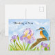 Thinking of You Watercolor Kingfisher Purple Iris Postcard