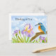 This thinking of you postcard features a vibrant kingfisher perched among softly flowing purple and white irises, beautifully rendered in a loose watercolor style. The serene nature scene symbolizes calm, hope, and quiet strength, offering a gentle and meaningful way to let someone know they are in your thoughts and close to your heart.
