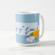 Cards for those going through hard times such as chronic illness can be so hard to find. "Get Well Soon" doesn't always apply. This coffee mug lets those you care about know that they're on your mind and they're not alone. The cosmos, cherry blossom, and lavender flowers symbolise resilience and support, while the light blue background helps the design apply to anyone regardless of gender. The bold lettering helps make the caption easy to see even for weaker eyes. The perfect way to tell friends and family that they are always in your heart.