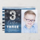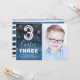 Third Birthday Silver Balloon | Blue Photo Party Invitation