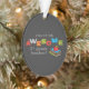 Let the 3rd Grade teacher know how much they are appreciated with this awesome gift. Brightly coloured block letters stand out against the dark grey background on this ornament. A stack of books and apple show a teacher status. Perfect for man or woman teacher to say Happy Teacher Appreciation Day!