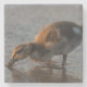 A baby mallard duckling gets a drink as it walks along the Lake Michigan beach with it's mother in Traverse city, Michigan. Looking for more prints or products? Feel free to visit my store: http://www.zazzle.com/timelessmomentsphtgy