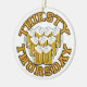 Thirsty Thursday design with beer mugs and black, gold and white varsity lettering.