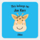 This Belongs to Back to School Cute Giraffe Blue Square Sticker