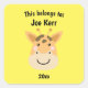 This Belongs to Back to School Cute Giraffe Yellow Square Sticker