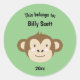 This Belongs to Back to School Monkey Face Green Classic Round Sticker