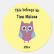 This Belongs to Back to School Purple Owl Yellow Classic Round Sticker