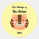 This Belongs to Back to School Tiger Face Yellow Classic Round Sticker