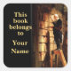 These customisable bookplate square stickers have a man on a ladder in an old library, looking at books.