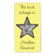 Top text says "This book belongs to" and bottom text gives two lines for a personal name. Text is black, and the general background is yellow, but can be colour adjusted by you.