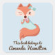 THIS BOOK BELONGS TO CUTE FOX WITH BLUE BOW SQUARE STICKER