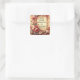 Ex Libris stickers with Decorative floral design of red peony flowers on a gold background with text in a square frame of This Book Belongs to and a name of your choice.