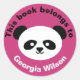 This Book Belongs To Girls Panda Bear Kawaii Pink Stickers. Cute panda bear face on bright pink background. text reads "this book belongs to" in black. Name is in white. www.SamAnnDesigns.com