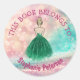 This Book Belongs To - Pastel Gradient Glitter Rainbow Bokeh sticker - A trendy sparkling coloured sticker with mixed turquoise, pink and mauve glitter with a princess wearing a green glitter dress. You can personalise this sticker by adding your name or your initials.