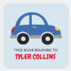 This book belongs to kid's book label stickers. Toy car vehicle name tag stickers. Personalised back to school supplies for little boys and girls. Cute blue race auto illustration with personalizable kids name. Childrens vector design in primary colours. Available in square and round shape. Custom back to school supplies for child, parents, teacher etc. Grammar / elementary school accessories.