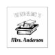 This self inking stamp is designed for any teacher to label her personal classroom books. It offers a cute graphic of a stack of books and custom text that allows you to personalise with the teacher name.