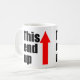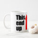 No more worrying about which end of the cup to drink from. This mug clearing indicates the business end with a bright red arrow.