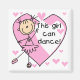 An adorable stick figure ballerina in a pink tutu, pink hearts, and text that reads "This girl can dance!" on ballerina bags, T-shirts, hoodies, mugs, buttons, mousepads, keychains, magnets, and other ballerina apparel and gifts.