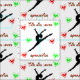 This girl loves gymnastics! This gymnast is doing a leap into the air surrounded by decorative font and red and green doodle hearts!