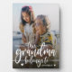 Modern photo keepsake plaque for grandma featuring single photo, elegant script ''this grandma belongs to'' and a child's name.