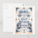 This is a postcard with the William Shakespeare quote, "When we are born, we cry that we are come to this great stage of fools."