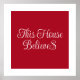 Show off your holiday spirit with this "This House Believes" typography script red poster, perfect for bringing festive cheer and warmth to your home decor.