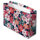 This is just a boho, modern spring flowers garden gift bag. A very pretty look that i actually like so much. A completed full print floral pattern with navy blue background.