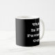 Classic Cup Mug coffee tea beverage drinking container printed with This Is My Favourite Cup with light grey silver text typography phrase on a black background colour by TheFabricSeal print on demand shop at Zazzle.com #ZazzleMade https://www.zazzle.com/store/thefabricseal TheFabricSeal©️Original.