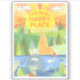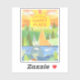 Original artwork of a kayaker in a river full of curious seals watching the brilliant sunrise come up over the rolling pine hills. Text reads "This is my Happy Place". Perfect for adventurers!