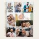 Personalised planner - editable for any year and, you can also add your name and 6 of your favourite photos. The design features trendy abstract shapes, outline drawing leaves and a colour palette of ochre yellow, green, blush and terracotta. Your pictures will be displayed in portrait and square format, to form this simple, grid style photo collage.