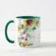 Inspirational custom scripture coffee mug depicts a cheerful watercolor floral design with yellow sunflowers, pretty pink flowers and greenery. It features Bible Verse Psalm 118:24, "This is the day the LORD has made; We will Rejoice and be Glad in it."_