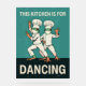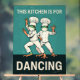 Funny "This Kitchen is for dancing" kitchen design depicts two frogs wearing chef's hat and uniform and dancing. This colorful and fun cooking and dancing design makes a nice gift for anyone who loves to cook and dance in the kitchen.