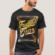 This luxurious t-shirt design features the elegant cursive text "Truffle Tsar" in rich golden yellow, deep brown, and creamy white hues, with subtle gradient effects that evoke a sense of opulence and sophistication. The design is set against a dark, cool-toned background, creating a striking contrast. Delicate, whimsical illustrations of truffles and crowns adorn the corners, adding a touch of playfulness. The text is framed by intricate, ornate borders that blend modern and regal elements, while a subtle texture adds a premium, high-end feel to the design.