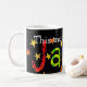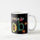 Classic white mug decorated with a colourful handpainted paper collage of 'This mug belongs to Jacob'. Microwave and dishwasher safe. See also matching gifts and greeting cards.