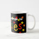 If your name is James, claim your ownership of this bright and colourful mug with your name in handpainted paper collage letters, on a black background, sprinkled with yellow, orange and red stars. The words, 'This mug belongs to...' are written in white just below the rim.
