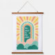 The polyester fabric displayed many wrinkles and several sharp creases throughout. At the bottom of the tapestry, I noticed a bulge in the fabric because it was not pulled tight enough before being connected to the wooden boards. It took me over an hour to spay water on the tapestry before putting it on an ironing board where I used a warm iron over a polyester cloth to remove the wrinkles and creases in the material. I was able to get out the wrinkles and creases that made that tapestry look as beautiful as its picture.