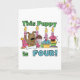 Puppy design 4th birthday T-shirts, bodysuits, magnets, cards, tote bags, 4th birthday buttons, and more featuring birthday candles, an adorable brown puppy, a party hat, and lots of birthday treats! Text reads "This Puppy is 4!".