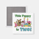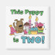 Puppy design 2nd birthday T-shirts, bodysuits, magnets, cards, tote bags, 2nd birthday buttons, and more featuring birthday candles, an adorable brown puppy, a party hat, and lots of birthday treats! Text reads "This Puppy is 2!".