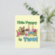 Puppy design 2nd birthday T-shirts, bodysuits, magnets, cards, tote bags, 2nd birthday buttons, and more featuring birthday candles, an adorable brown puppy, a party hat, and lots of birthday treats! Text reads "This Puppy is 2!".