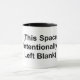 A coffee mug with the words "This Space Intentionally Left Blank" in parentheses on the front.