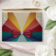This vibrant and elegant wedding invitation combines minimalistic style with a burst of radiant color, making it perfect for couples seeking a playful yet refined aesthetic. The focal point is a brilliant spectrum of warm and cool hues radiating outward, creating a captivating rainbow design, symbolizing unity and joy. A luxurious red bow with a sparkling central gem adds a touch of glamour and sophistication. The clean, modern typography is placed tastefully in the centre, framed by the colourful rays, creating a balance between fun and formality.