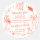 Get ready to trade the feathers for a veil! Celebrate the bride-to-be and her all so important bride squad in true Las Vegas style with these custom bachelorette party favor stickers. Featuring a chic, retro-inspired illustration of a showgirl in a martini glass, disco balls, and whimsical bows, this design captures the glitz and glamour of a classic cabaret night. The whimsical design is perfect for "One Last Show Before The "I Do's!" and the template wording is easy to personalize using Zazzle’s design tool to match your specific dates, locations, and the name of the bride-to-be!