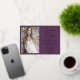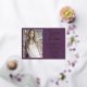This witch is getting hitched Halloween bride to be/bachelorette invitation on a dark purple background. Photo template via Pixabay licensed under CC0 and must be replaced with your own photo