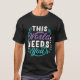 I give wanted to give this a 4 instead of a 5 because these Basic DARK T0shirts run unexpectedly SLIM or Narrow. Which is great if you do not have a potbelly, but I have a paunch. It isn't the shirt's fault that I've got a beer belly. The design and shirt itself is a quality cotton shirt. The color is more of a deep purple, but still a very pretty color. The Basic DARK T-shirts run a bit SLIMMER than the Basic Ts. The neck is a fraction narrower (or seems to be narrower) also. I'm a paunchy middle-aged woman and my neck is 12 inches (31cm) thick and the neckline fell about the same as in the photo of the man, and I had the desire to tug it a bit. So if you're a thick necked man or like loose shirts, be aware these are slimmer shirts. Once I get rid of my lockdown paunch it'll look great. The shirt washed well in cold water with no apparent bleeding. We don't have a dryer, so it hung dry. Did not shrink. Love the colors and the design. The design looks smaller on my shirt than it does on the model on-line. But still, it looks good on the shirt. The printing looks as it does on the model, just the size seems fractionally smaller. Washed garment in cold water, hung dry and design appeared unaffected.