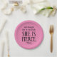 Though she be but little, She is fierce Pink Paper Plate