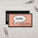 These Simple Pink "Code" Modern Professional Standard Business Cards are a cool and unique business card choice for a computer programmer or IT professional. Start the conversation with this programmer's business card; be noticed and remembered.
